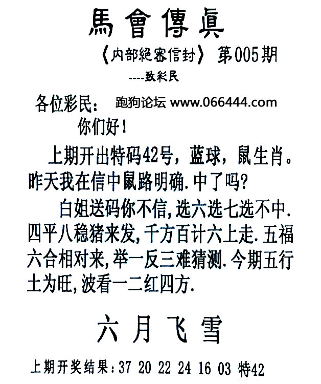 005期:香港跑狗论坛原創-【精准单双中特】→资料已公開 跑狗出版社