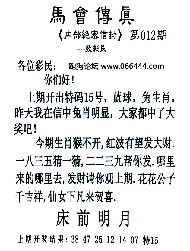 012期:【金旺旺信箱】【曾道人信箱】【發横财】【悟入其图】 跑狗出版社 『跑狗论坛:www.444024.Com