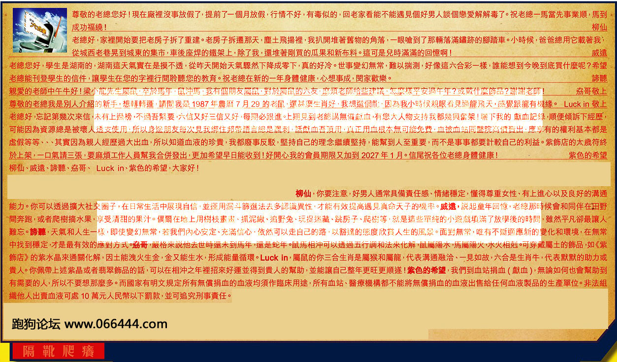 【6】.老總好,忘記第幾次來信。未有上過榜,不過吾緊要,六信又好三信又好,每期必跟進。上期見到老總講無償献血。有您大人物支持我都幾興奮架!曬下我的献血記錄,順便傾訴下經歴,可能因為資源總是被壞人透支使用,所以身邊朋友每次見我绑住邦帶語言總是調刺,話獻血吾頂用,真正用血根本無可能免费,血被血站同醫院高價賣出,應享有的權利基本都是虚假等等、、、其實因為親人經歴過大出血,所以知道血液的珍貴,我都廢事反駁,堅持自己的理念繼續堅持,能幫到人至重要,而不是事事都要計較自己的利益。紫飾店的太歲符終於上架,一口氣請三張,要麻煩工作人員幫我合併發出,更加希望早日能收到!好開心我的會員期限又加到2027年1月。信尾祝各位老總身體健康! 紫色的希望